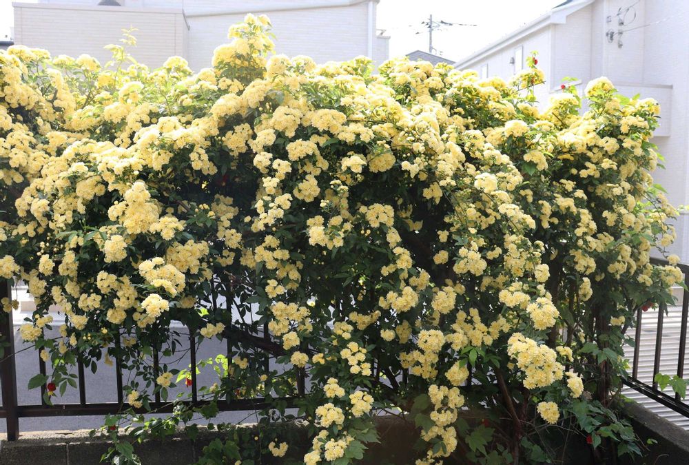 少し前はモッコウバラがあちこちで咲いて、そして大概は大きく育ってモリモリ咲いていました。