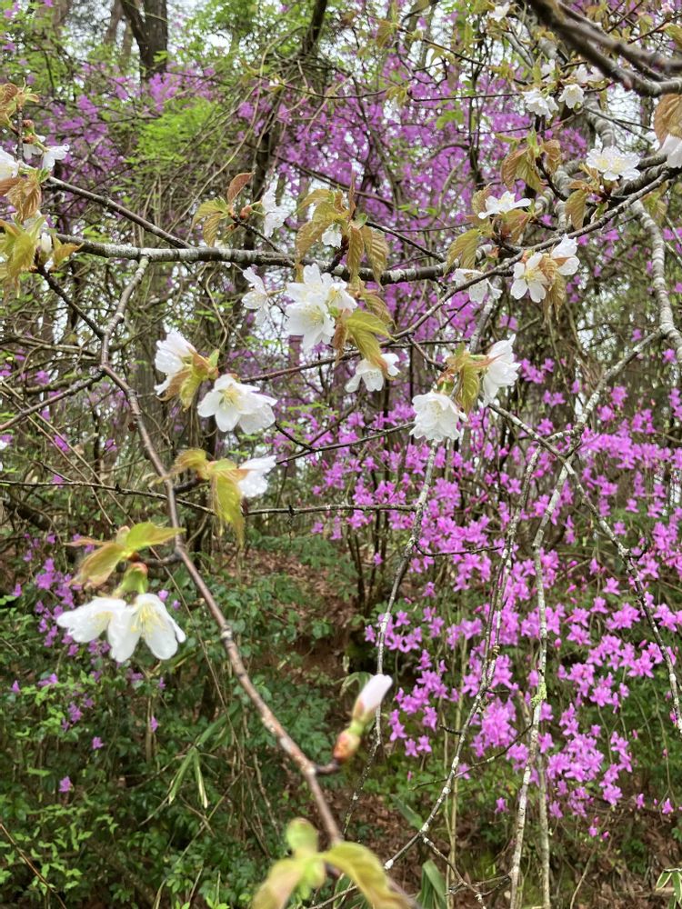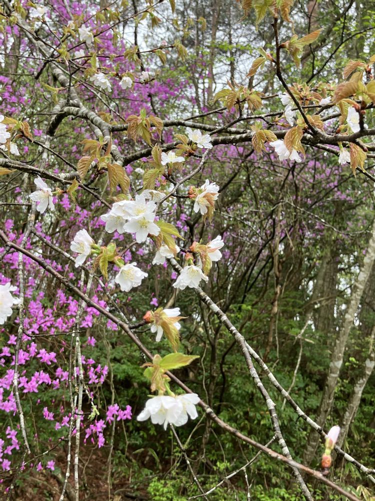 ヤマザクラとツツジです