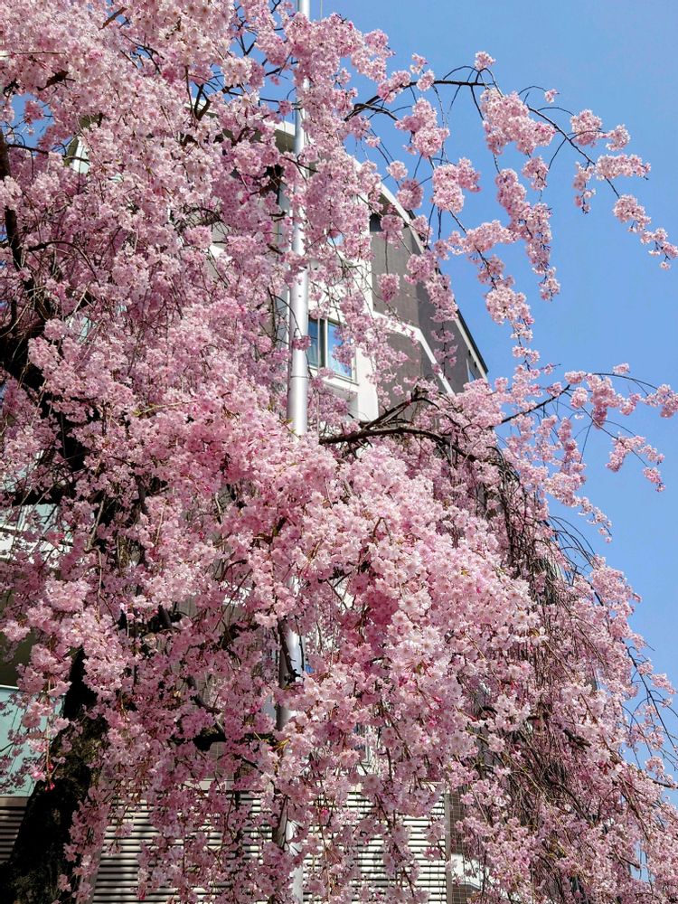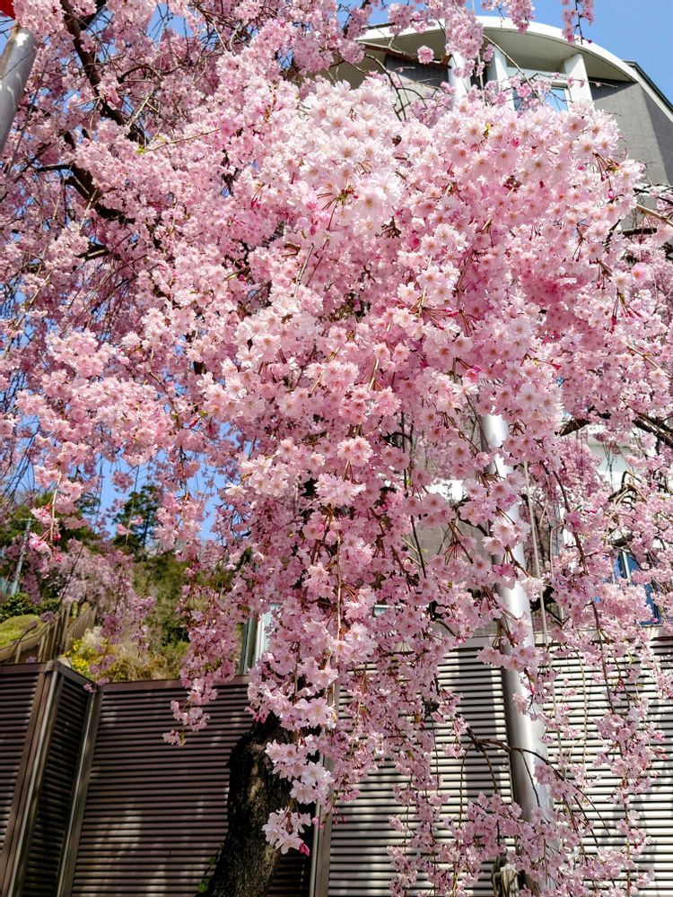 昨日の午前、市内を散歩途中に見かけたシダレザクラ。