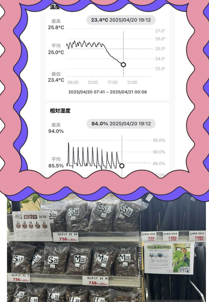 湿度85%維持してるけど、オキボタで購入した養生中の輸入株が腐りそうでヒーター切ったら温度下がりました🙄あと、ホムセンで花森家のねこの登り棒、取り扱いしてくれるようになって嬉しい☺️