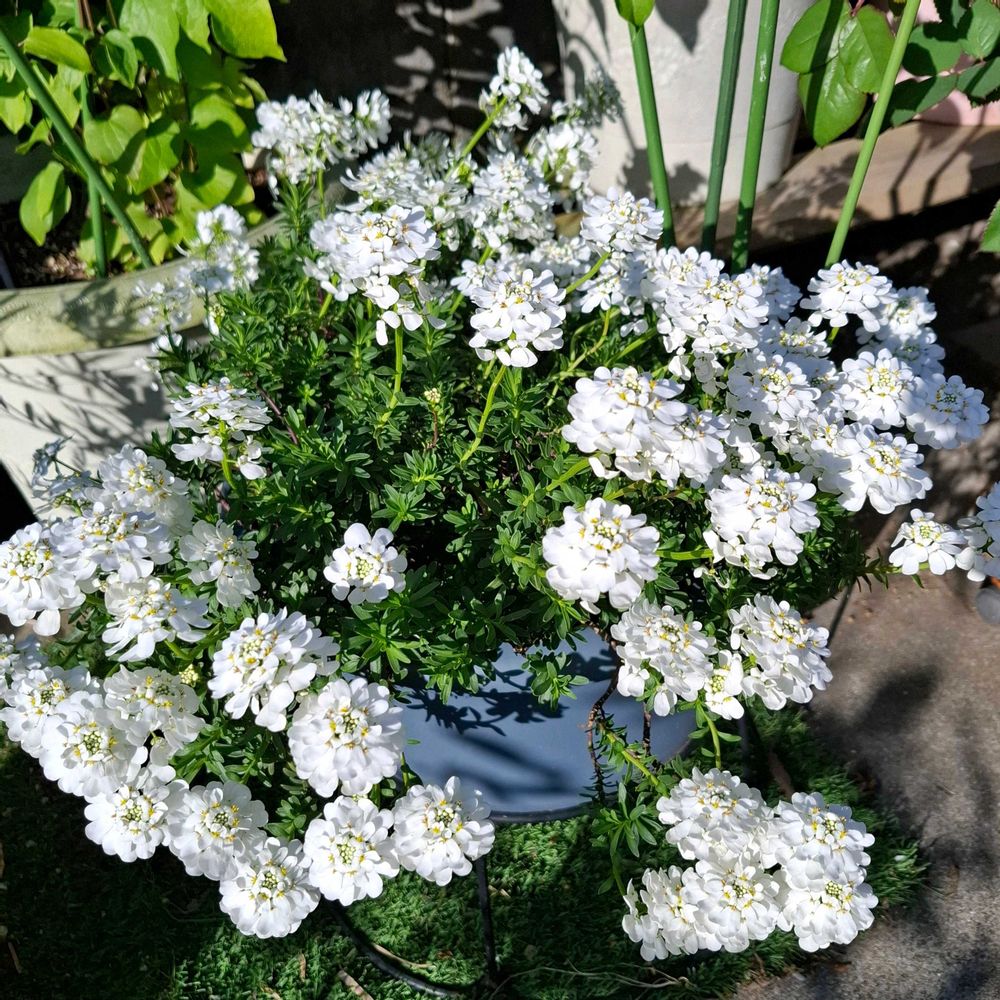 ☝️…2本の茎がくっついて咲いたヘレン~去年のネメシア~毎年咲くイベリス~毎年出る地植えユリ…