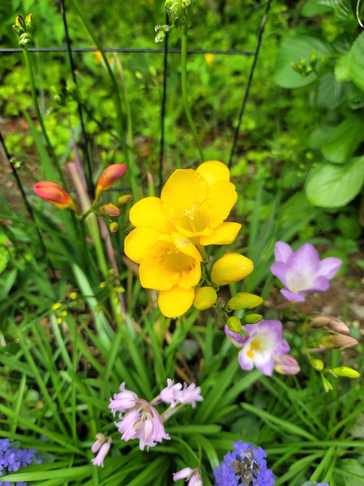 ➀今日✾フリージア✾が咲きだしてきました💛💜🩷🌿