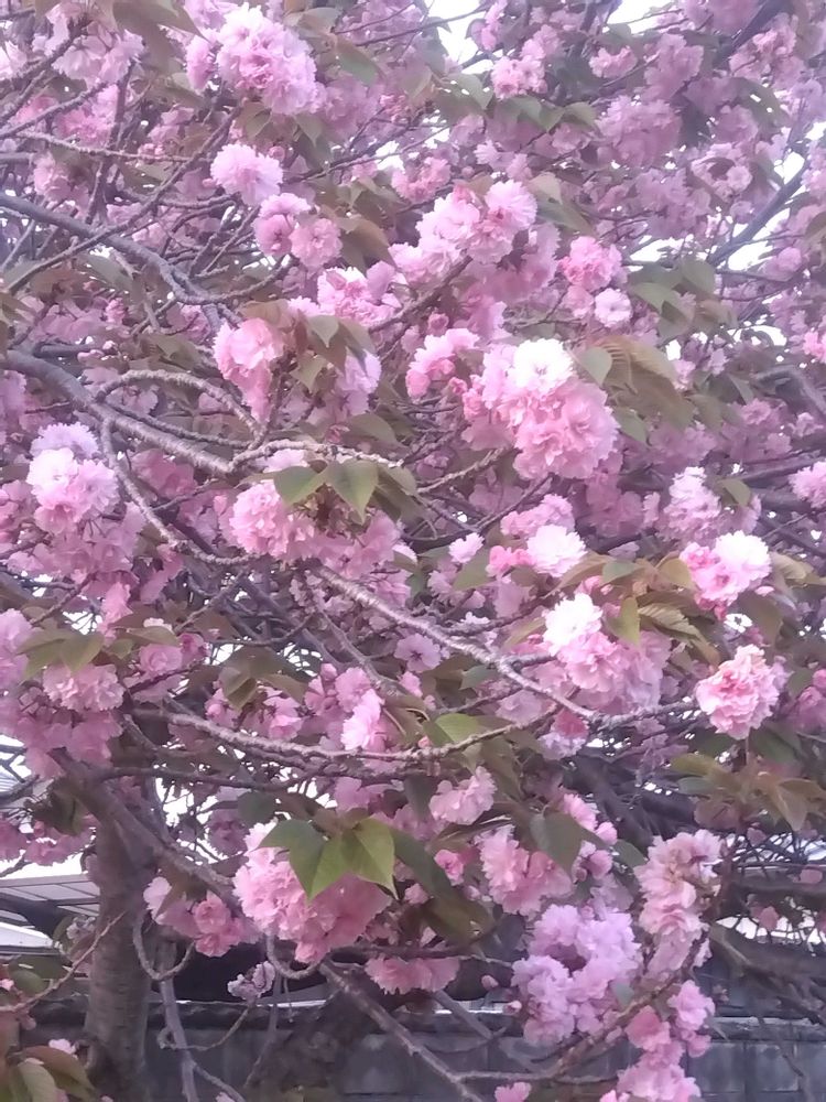 年輪のありそうな凄く大きな木の牡丹桜が綺麗に咲いていました🥰🤗