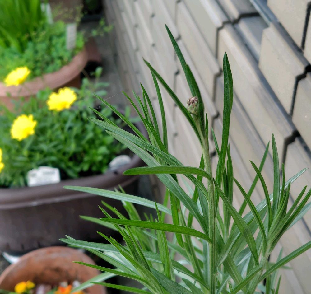 なかなか咲きそうにないので、大きな鉢に植え替えしようかな、と迷いながら覗き込むと…、てっぺんに蕾が😆!