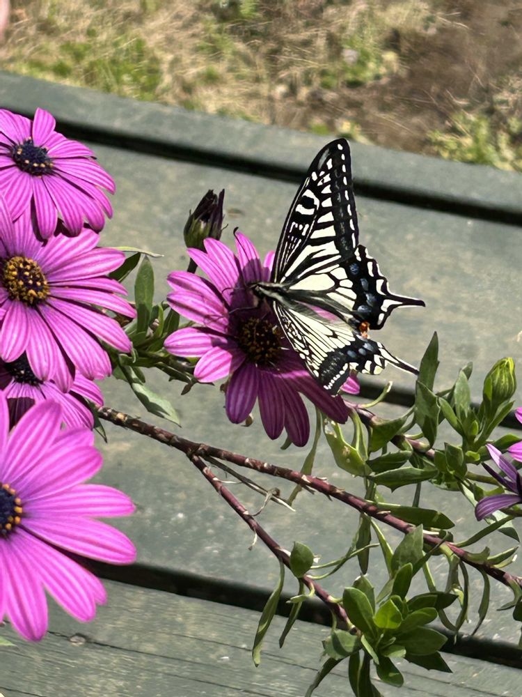 オステオスペルマム、今日は、アゲハチョウが💕