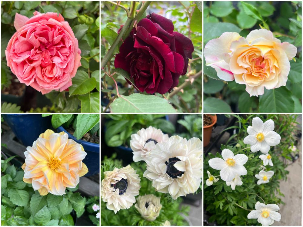 と、しみじみしたいですが、自然は待ってくれませんで、この暑さで一気に薔薇の開花が進みました。2枚目の3品種が我が家の1番乗りです。魅力的な花は沢山ありますが、風の中に薔薇の香りがまじっていると、やっぱり女王なんだなと思ってしまいますね。