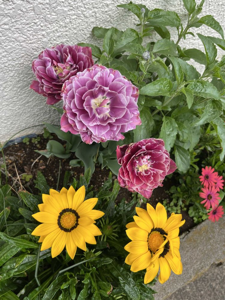 ダークなチューリップの手間が明るすぎるガザニアっていうのは配置ミス?😂