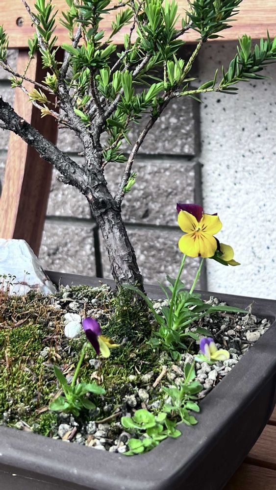 渋いはずの盆栽に、茶目っ気たっぷりなピオラちゃん🤭