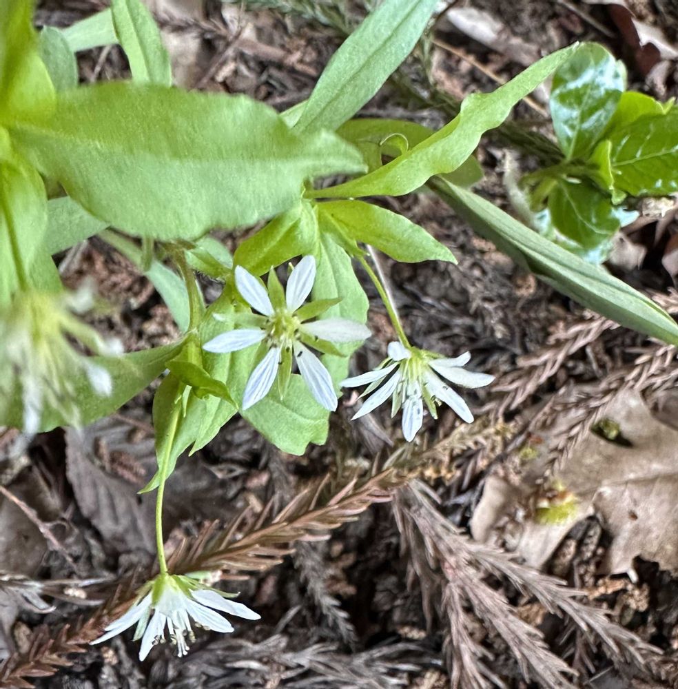 ワチガイソウが葉腋から花柄を出すのに対し、茎頂に花をつけます。葉が線形だとヒナワチガイソウですね。