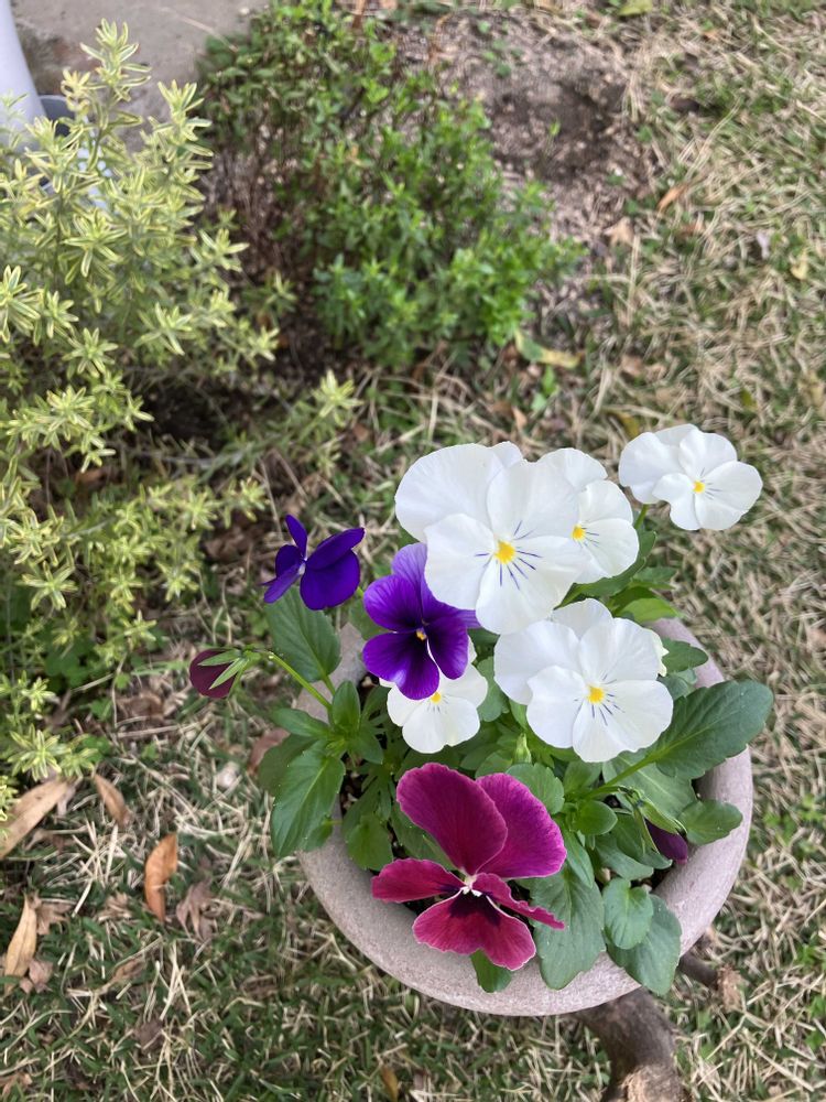 秋に種蒔きパンジーナチュレ混色もようやく咲いてくれました☆☺️