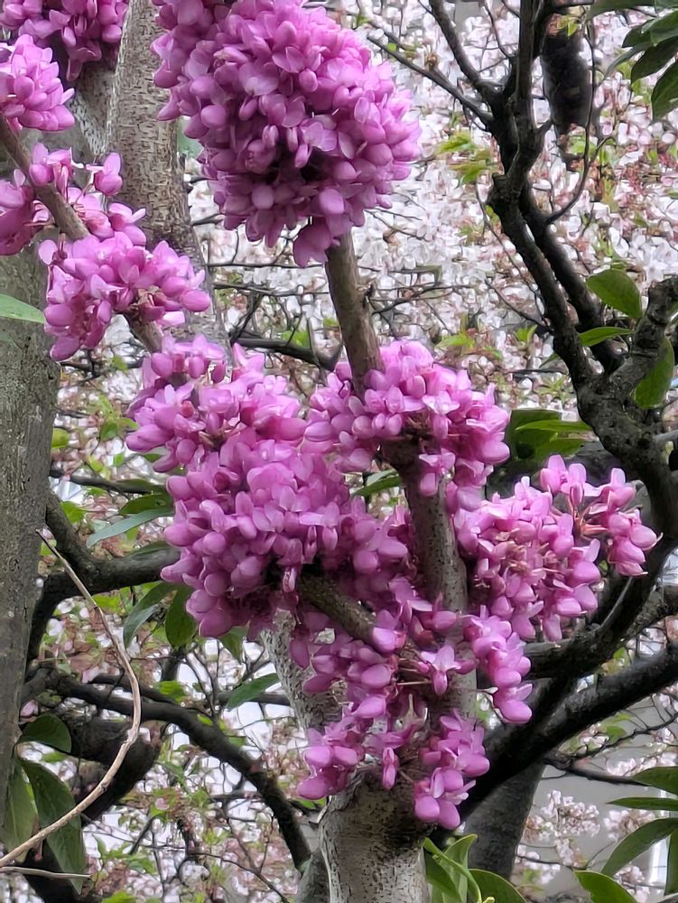 わぁ、ハナズオウ綺麗ですねー。ピンクが濃いから、遠くからでも分かりやすいですよね。˶˃ᴗ˂˶