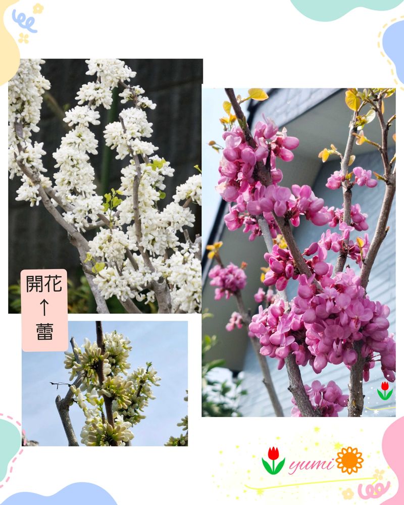 ユミさんのお家、ハナズオウ🩷🤍😆