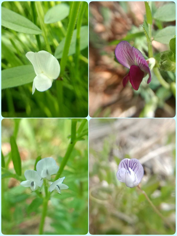 シロバナカラスノエンドウとスズメノエンドウ、カスマグサの花可愛いですね😍