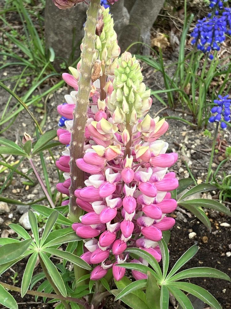ルピナスをお迎えしました。ツバキや八重咲きスイセン、チューリップも開花中。🤗🤗🤗
