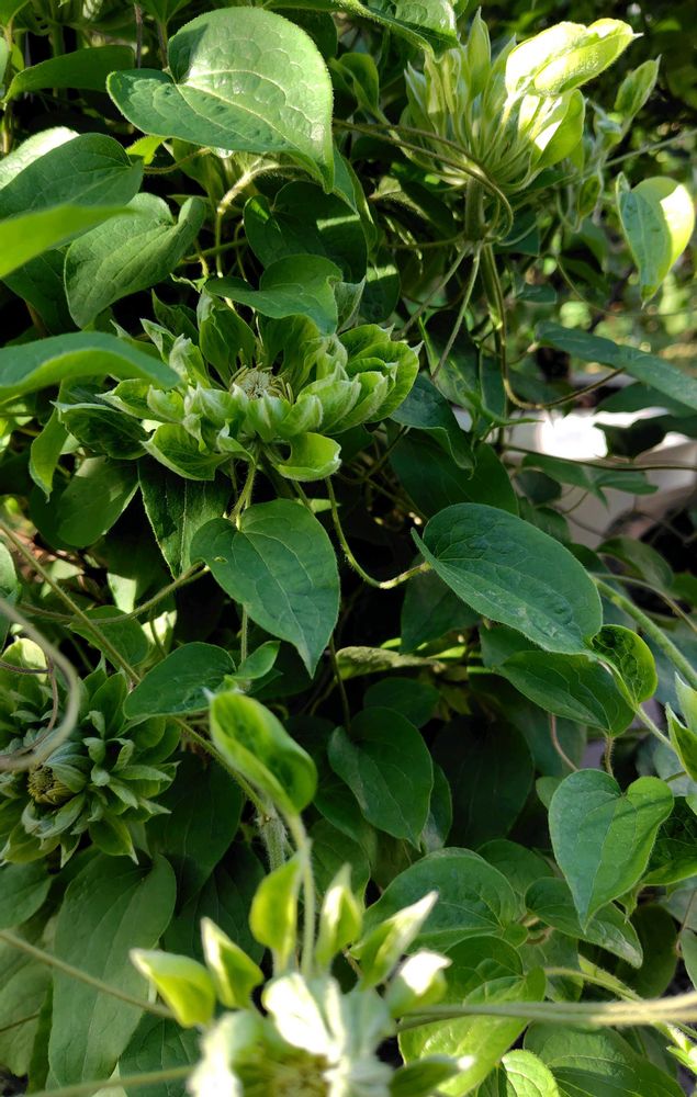 最初に咲いたのは、咲いたか、どうだか、よく解らない😅グリーンのクレマチス💚😂グリーンパッションです😊
