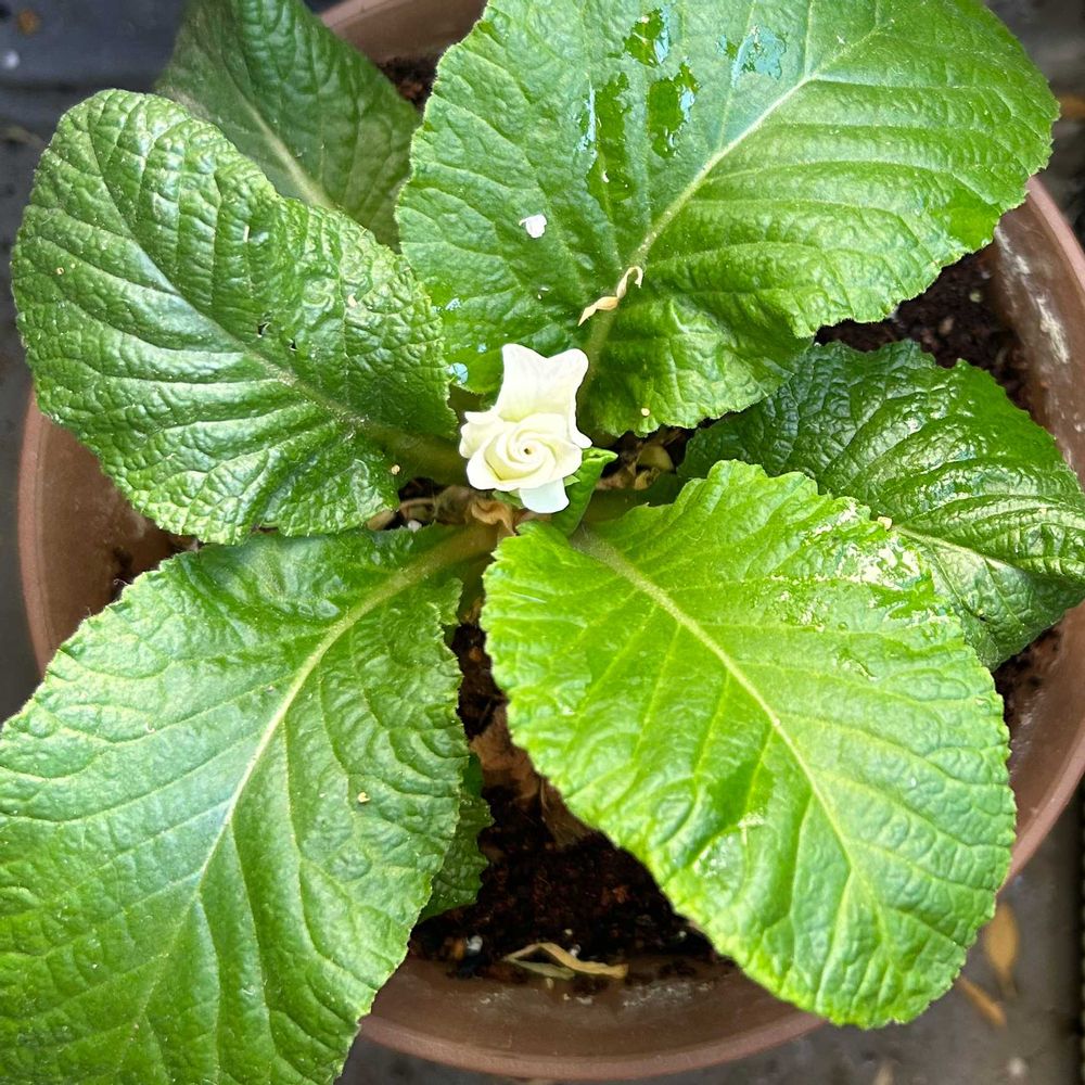 今日見たら、葉が立ってるし花まで咲き始めているではないですか!