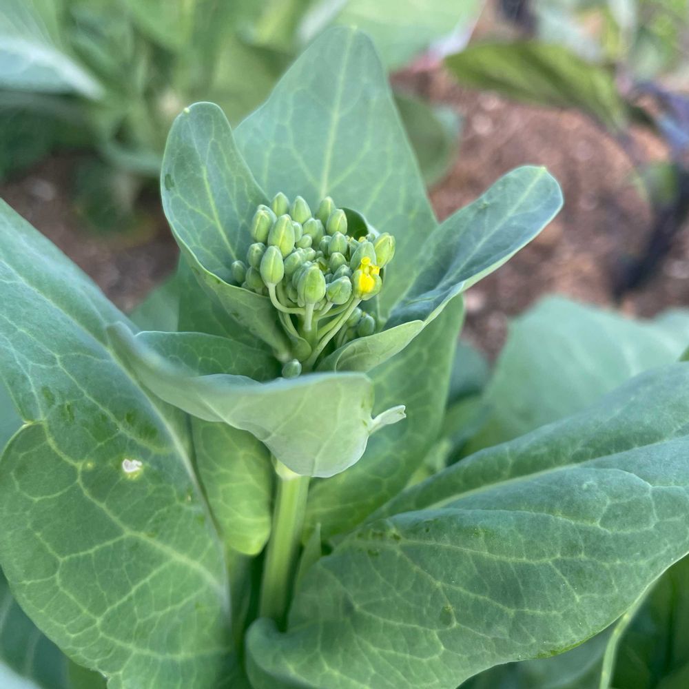 秋に植えてすぐ雪の下になった白菜の苗😅 蕾が出たところを切ってお浸しにしてます