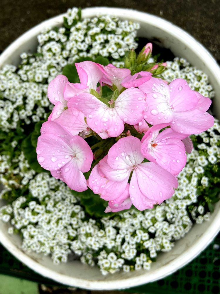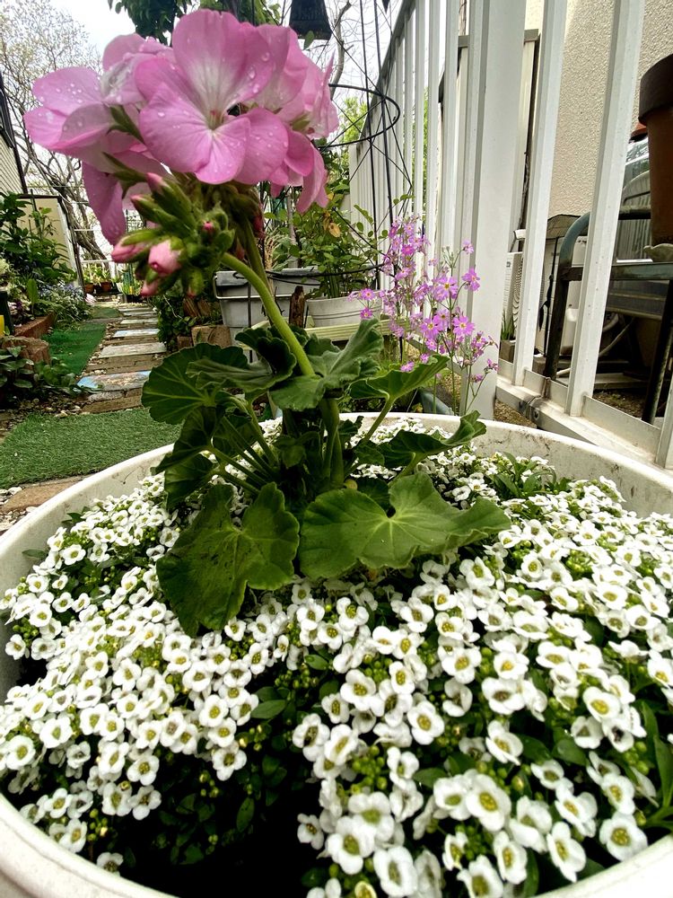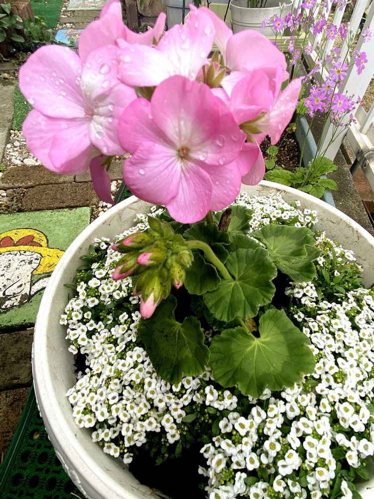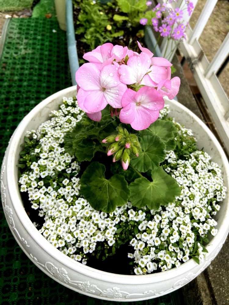 可愛いピンク🩷のゼラニウムと合わせて鉢に入れたら可愛いのが完成💕🤍🤍🤍🤍🩷🤍🤍🤍🤍良いね😊👍