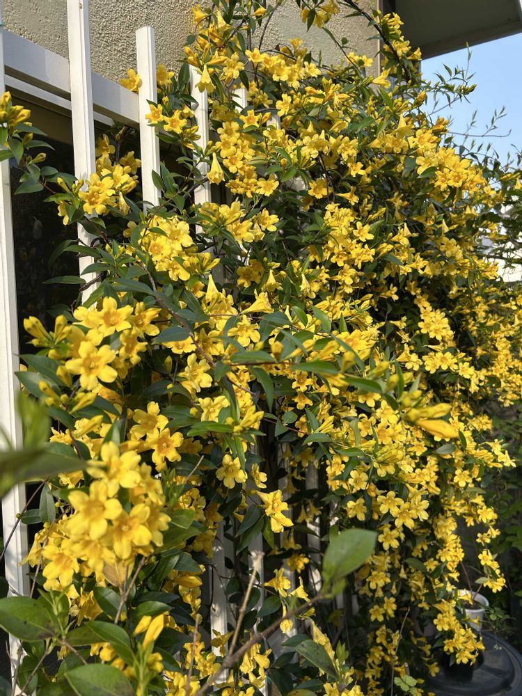 北側に咲くカロライナジャスミンが満開です🌼🌼🌼