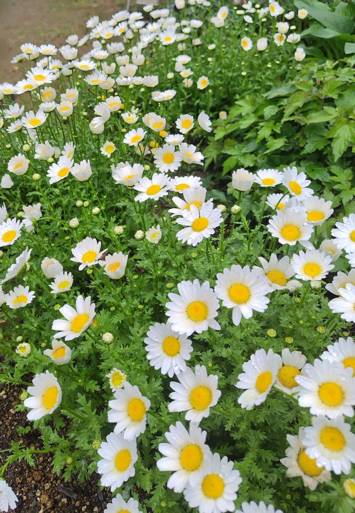 ①秋に溢れ種から出た双葉をポットで育て、花壇に植えたノースポール🤍🤍🤍今季は少しだけにしたつもりだけど、過酷な場所から双葉が顔を出しているのを見つけたら、つい拾ってしまいます。三ヶ所の花壇でモリモリ٩(๑❛ᴗ❛๑)۶