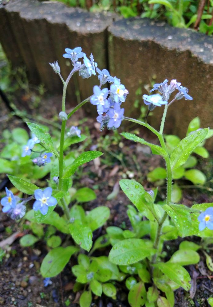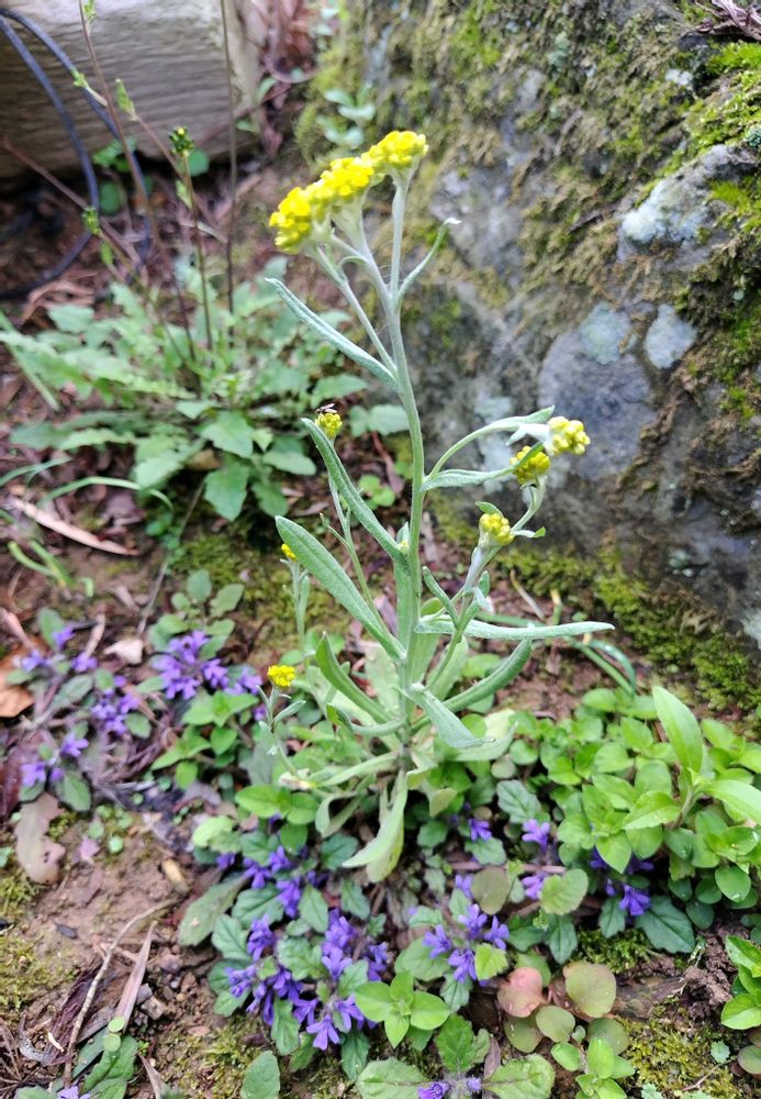 ②築山で咲く雑草のキランソウとハハコグサ 💙💛