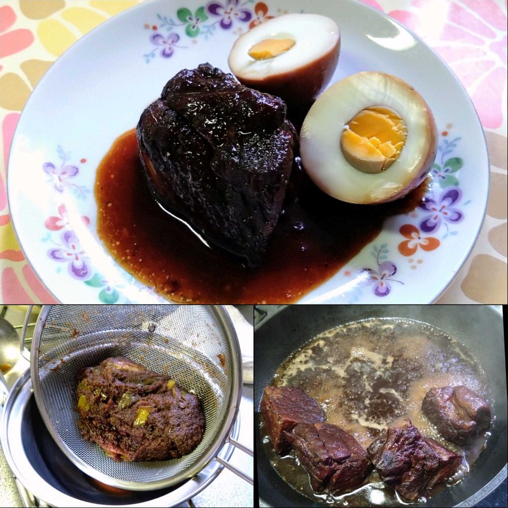 リンゴ、ニンニク、生姜、葱の青い部分、各種スパイス、醤油、蜂蜜、赤ワイン🍷