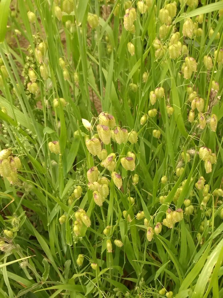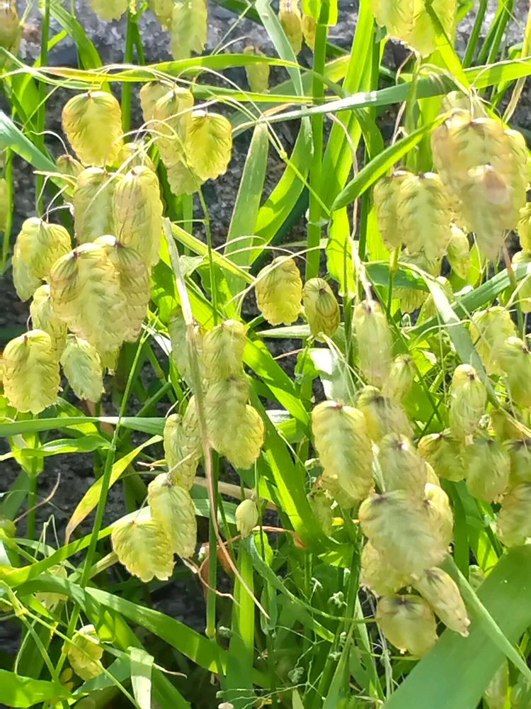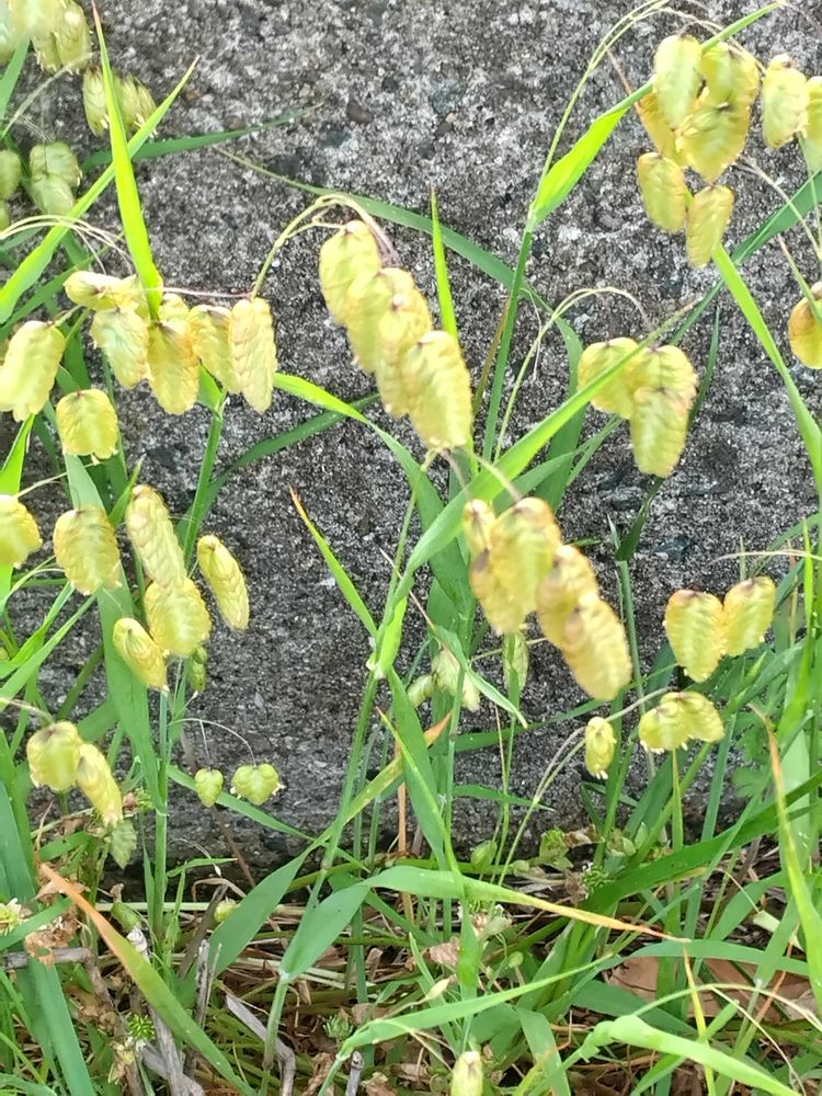 今朝の散歩道で見つけた小判草。枯れ初め(❓️)に