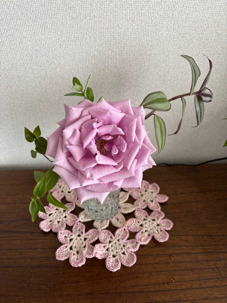 昨年編んだ桜模様の花瓶敷きと一緒に🌸