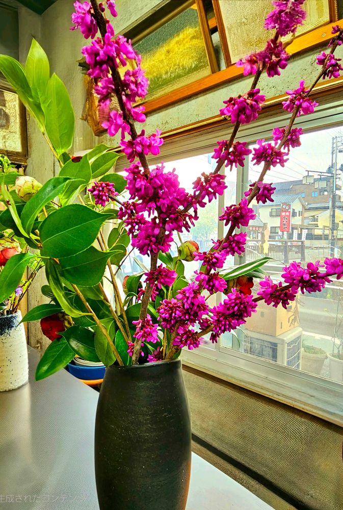 1️⃣今日のお花ハナズオウ枝を頂きました(花瓶に挿しました)