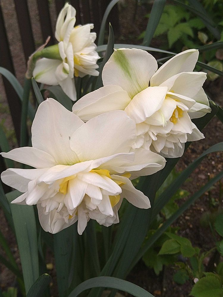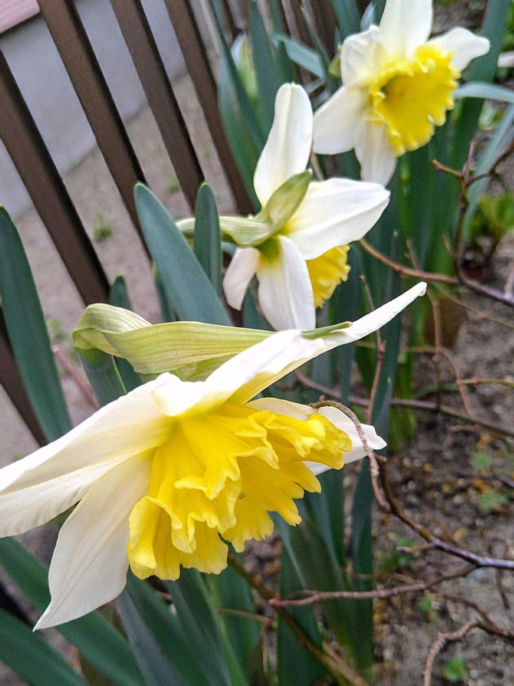 植えてから3年目、綺麗に咲きました✾が、中には花のつかないスイセンも…
