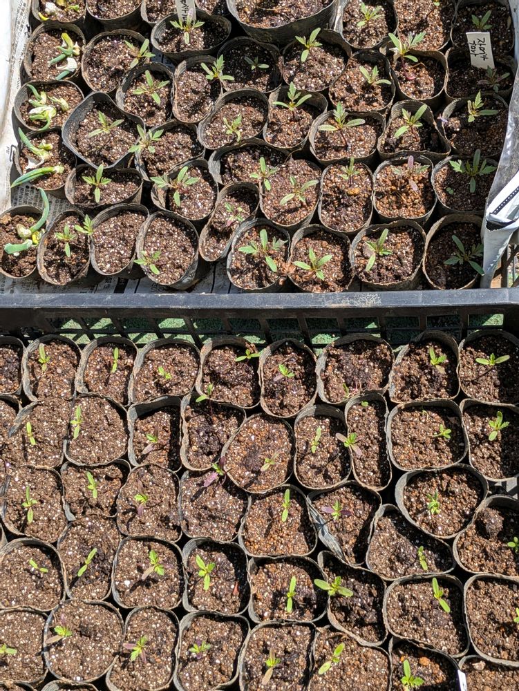 お高い種の、白いマリーゴールドは、2つしか発芽しなかった〜。