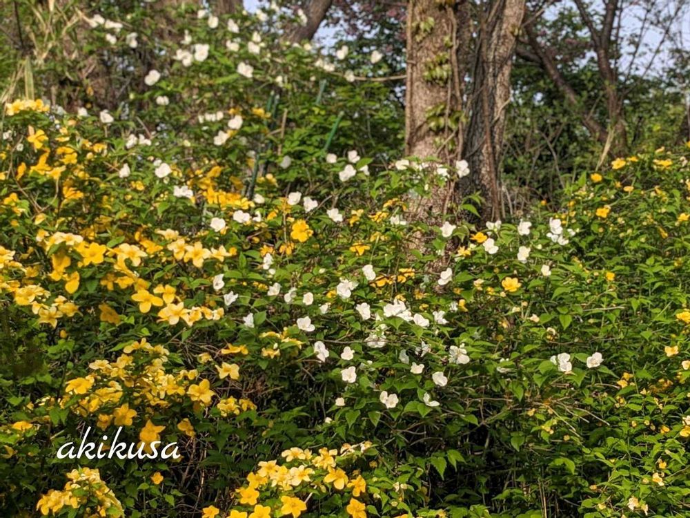 庭,アケビ,シロヤマブキの投稿画像
