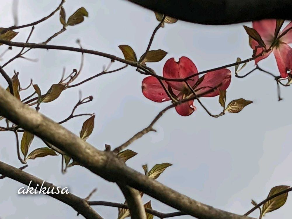 紅白の花水木の赤花を見上げて…