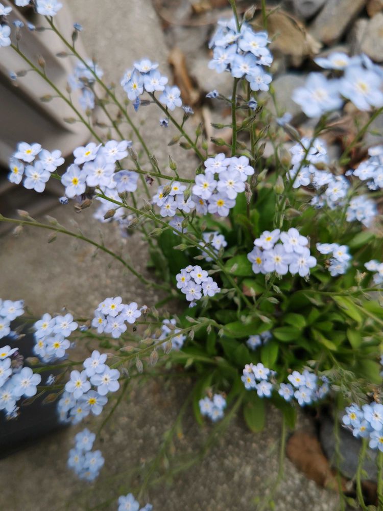 こぼれダネからの、ペチュニアや忘れな草も満開になり、放置の空き地は花畑状態です。
