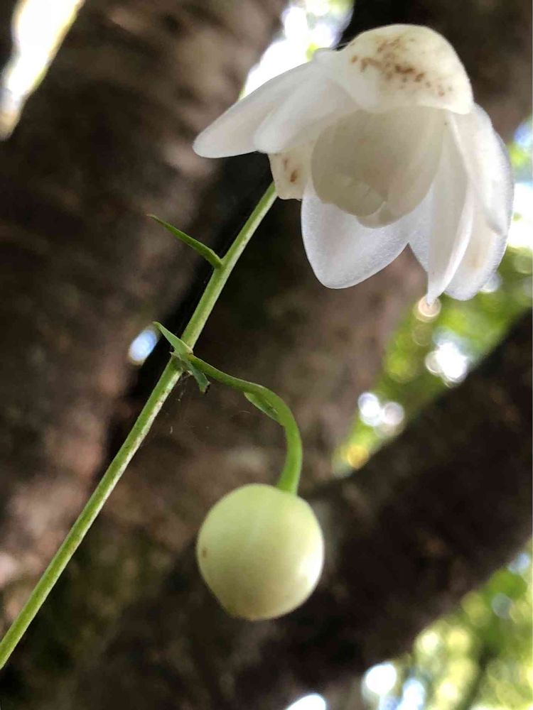 会えないと思っていた森の妖精🧚♀️に思いもかけずに会えました。たくさんの花たちの中で、白の株を見つけました。