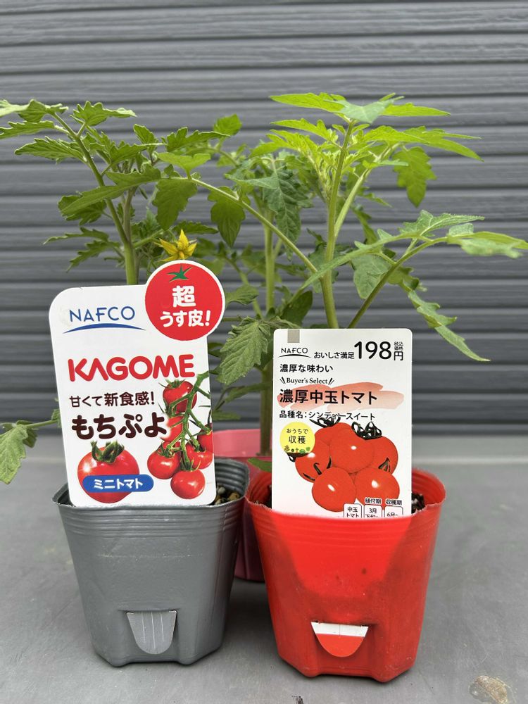 プチぷよは育苗中🌱なのにHCで名前につられて買ってしまったカゴメのもちぷよ🍅 初めて中玉と大玉にも挑戦💪
