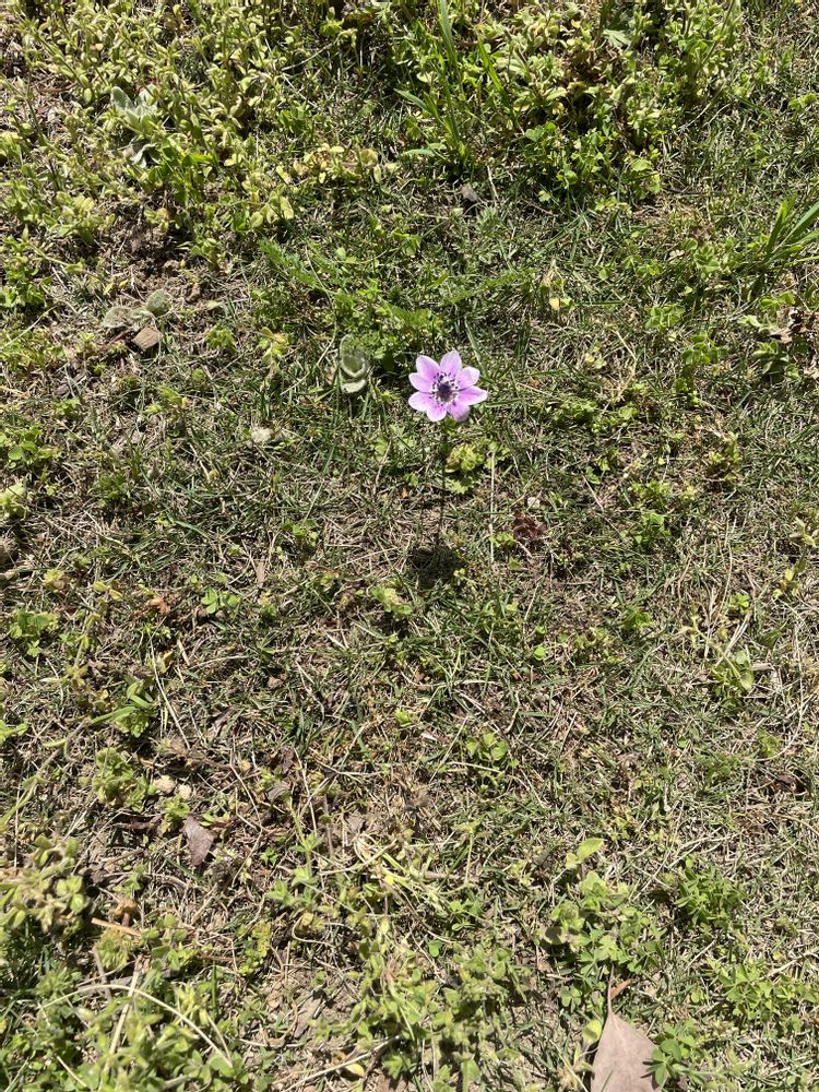 3.アネモネが芝生の真ん中で咲いてました種が飛んだのかしら🤔