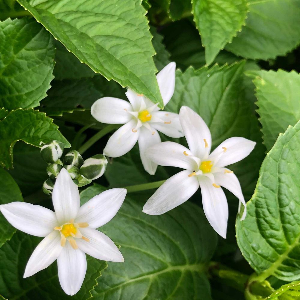 オオアマナってお名前なのね🤍紫陽花の鉢から可愛いお花が咲いてラッキーですね😃💕
