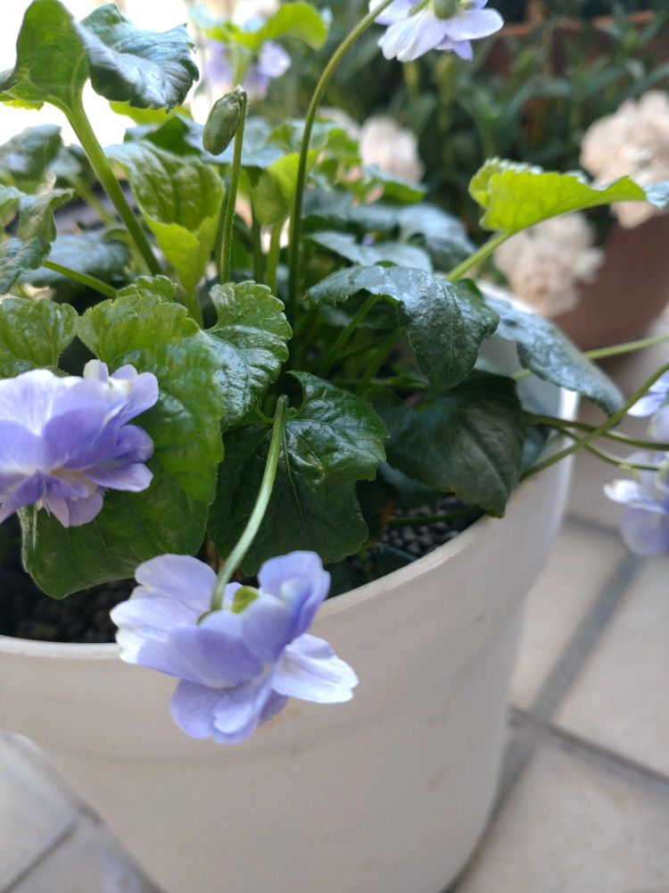 パルマすみれ 来たときよりは少し葉っぱも立ち上がって ほんのり優しい香りがします💜🌿