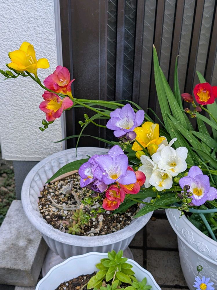 フリージアって風が強くて倒れても首を持ち上げて咲きますね🌸