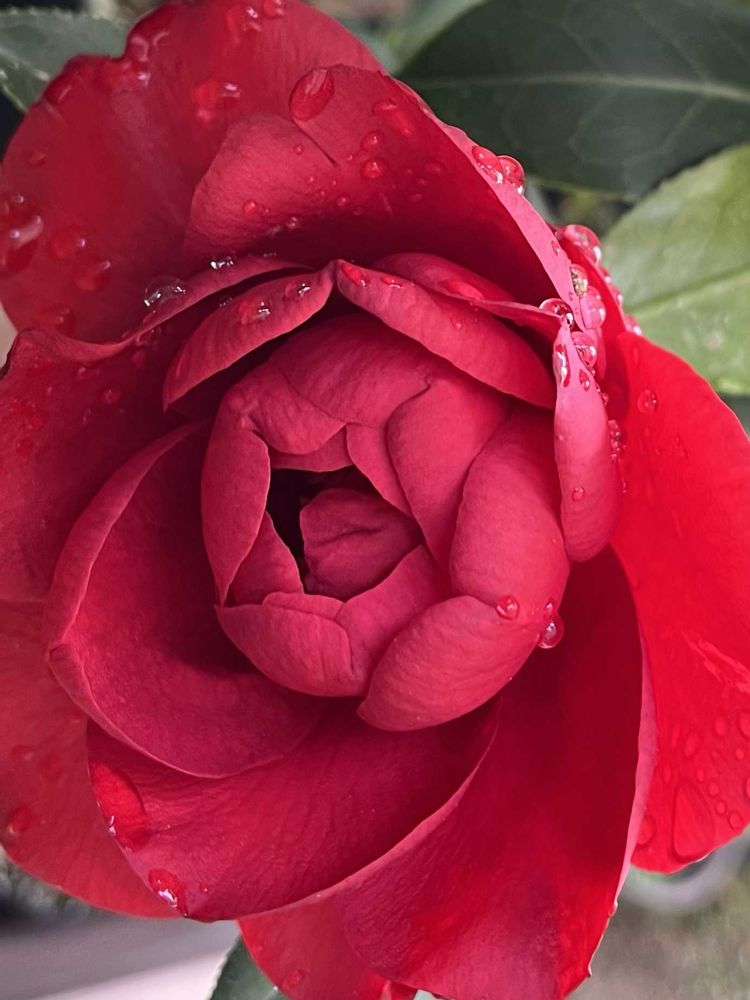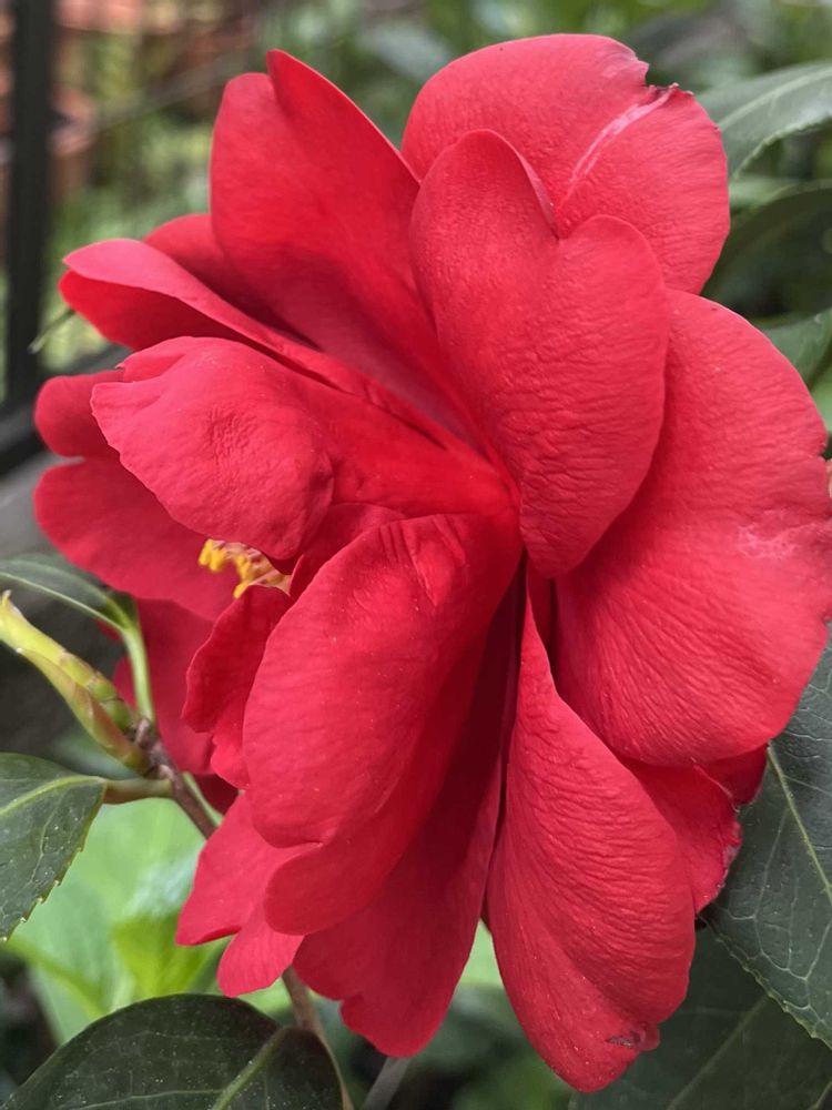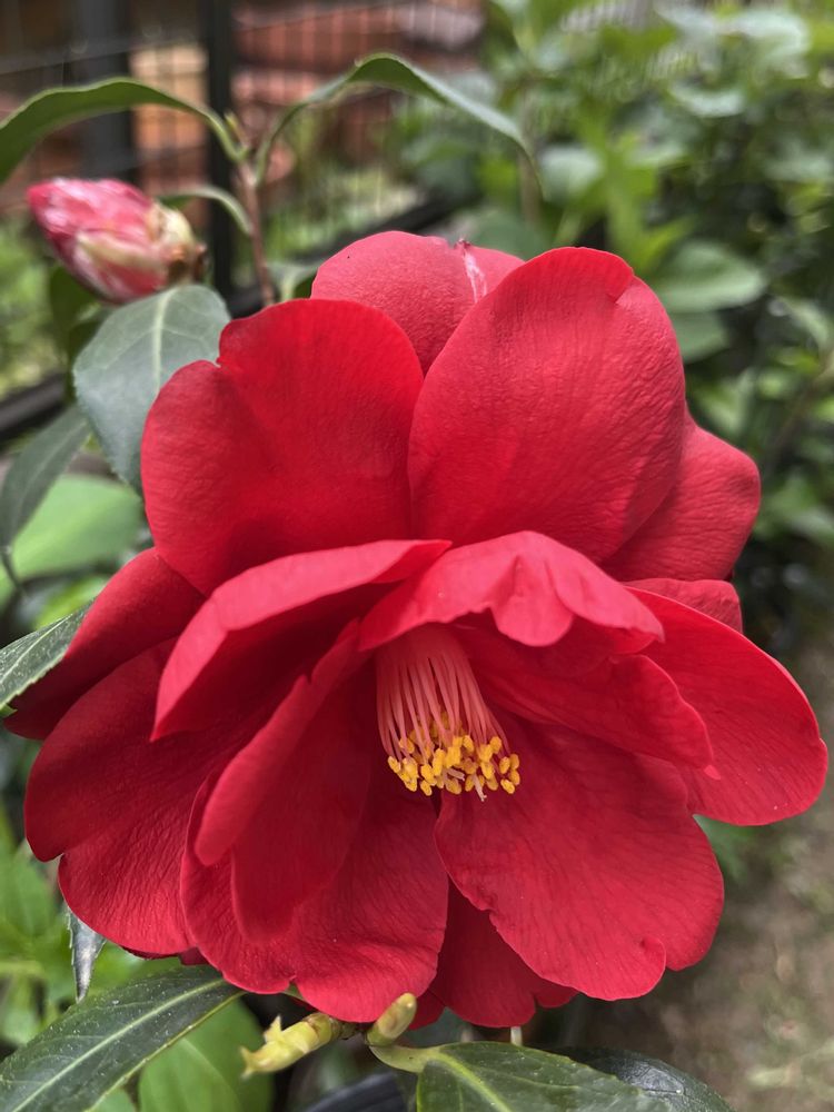 椿・ロイヤルベルベット♥️初めましてー🎵小さな苗から3年ほどかけてようやくお顔が見れました⸜(*ˊᵕˋ*)⸝
