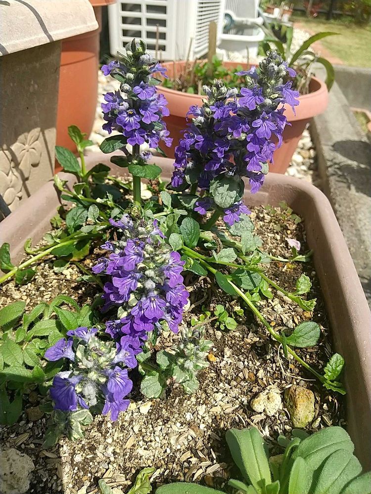 なんとか越冬したアジュガが咲きました!こんな花なんですね。いい色です\(^o^)/