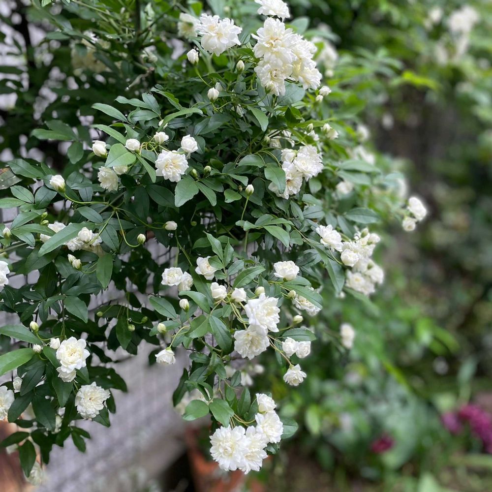 我が家も白と黄色がありますが黄色が何年か前に暫くお手入れで来なかたったら垂れ桜の木まで伸びて今は垂れ下がって来てます(笑)桜の木から咲いてるみたいでそのままですがいずれ両方切らなきゃいけないかと💦