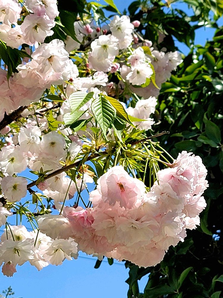 ①八重の桜🌸が青空🟦にとても美しいです✨
