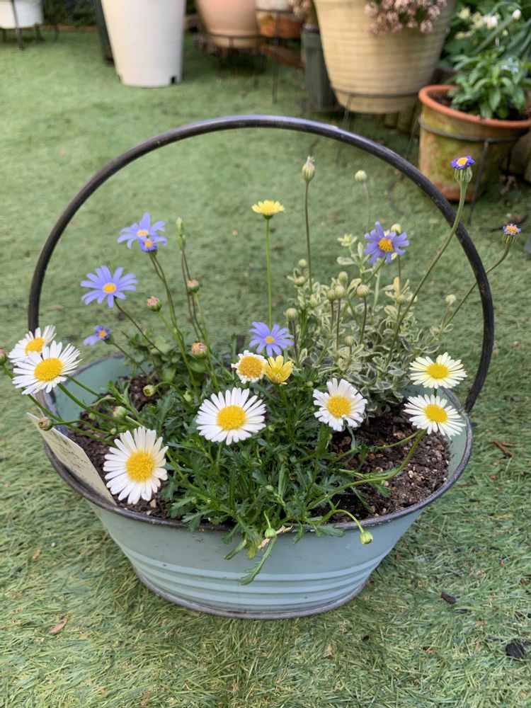 よく似た花姿の花ばかりの寄せ植えになってしまいました😅