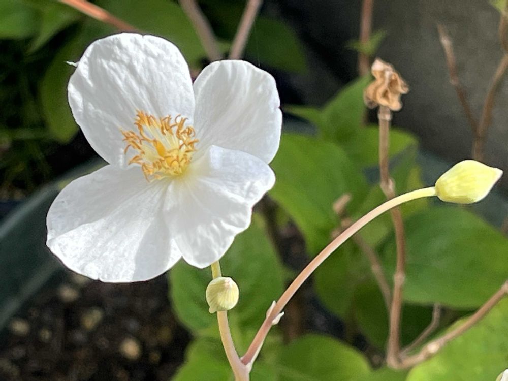 昨シーズン小さめのプランターに3株色違いで植えてました。同じ場所で目覚めてくれた赤紫にホッ☺️種が飛んだのか⁉︎白花は全然違う場所で目覚め無事開花🙌もう一つ他で小ちゃな苗が芽吹き🌱お花待ち。ポワポワ翁の種は自由奔放なのかしら🤔