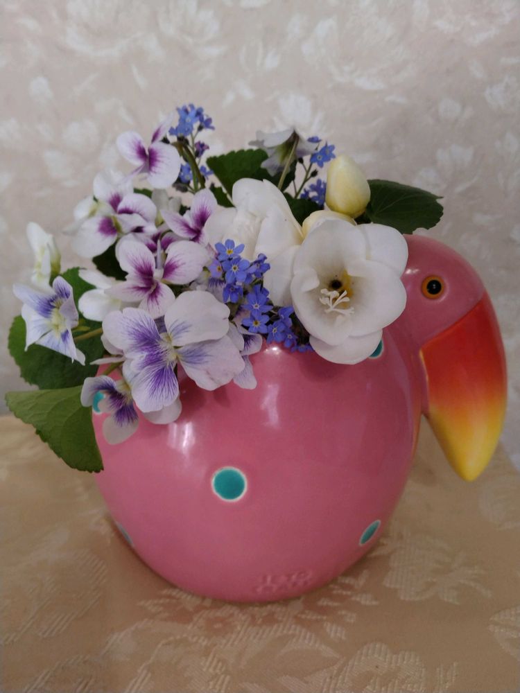 花器は、ピンクの変わった鳥でして、花器ではないと思われます。