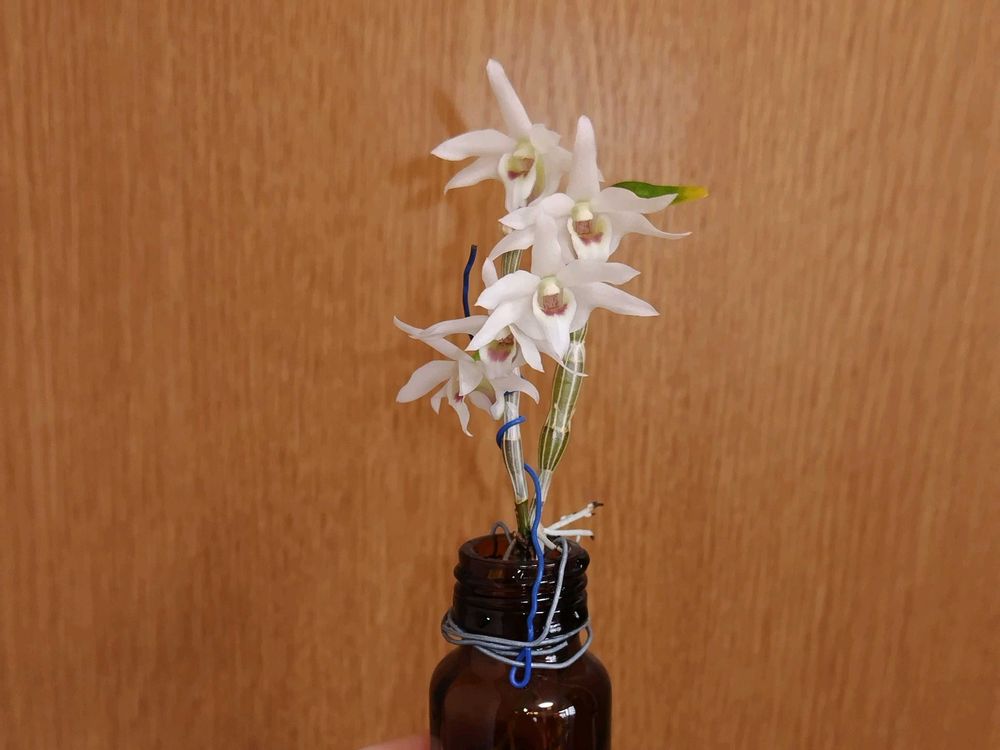 3、4枚目は去年開花した高芽を1本取って水栽培を始めた伊勢です。前年新しく出たバルブに花をつけるようです。