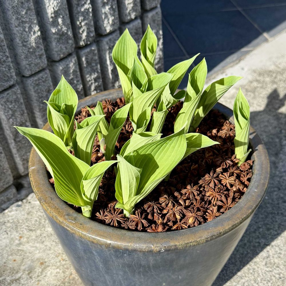 ギボウシゆえに冬の間なにも無くなってしまうのでお飾りとして敷き詰めてみたのが始まりでした🪴