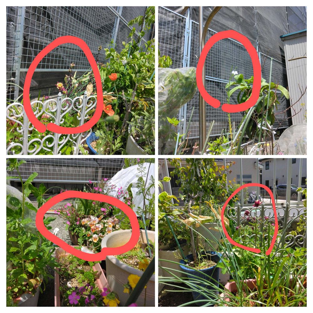 マーク⭕の所に3年待ったオダマキの子孫が開花していた🤗❣️🎶